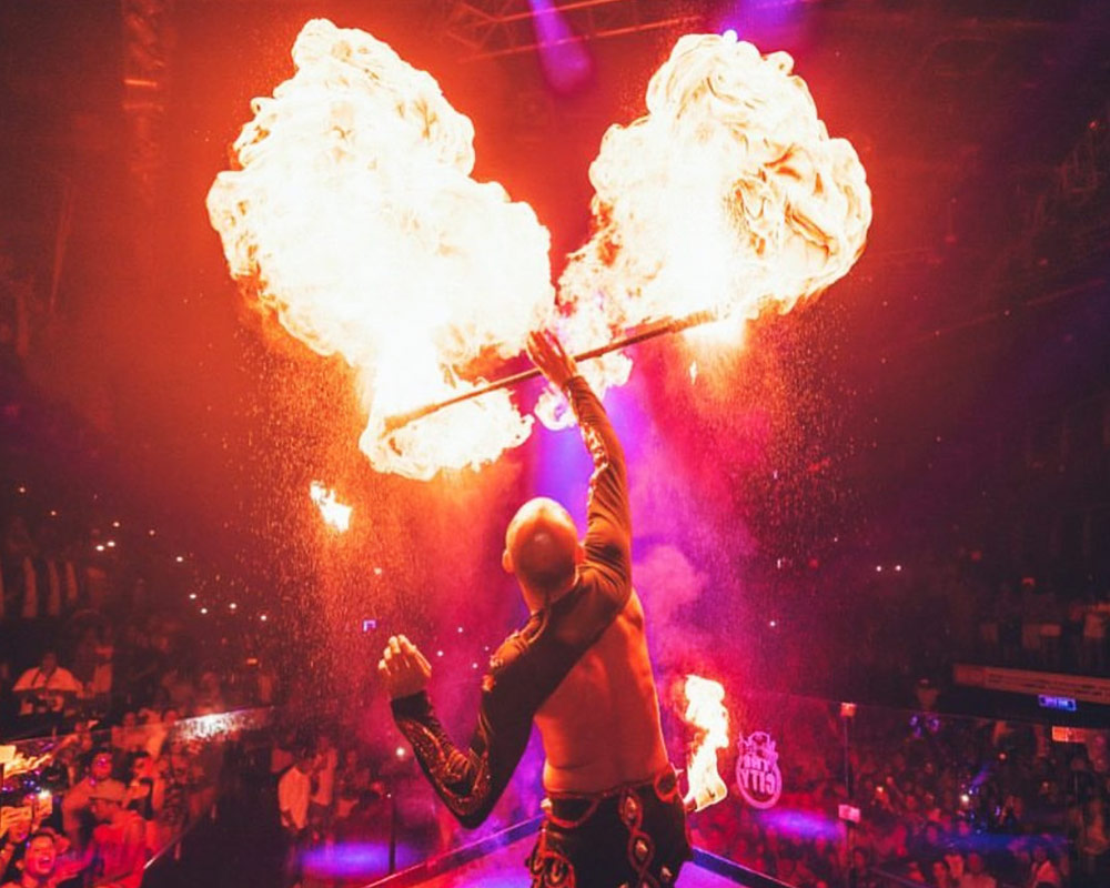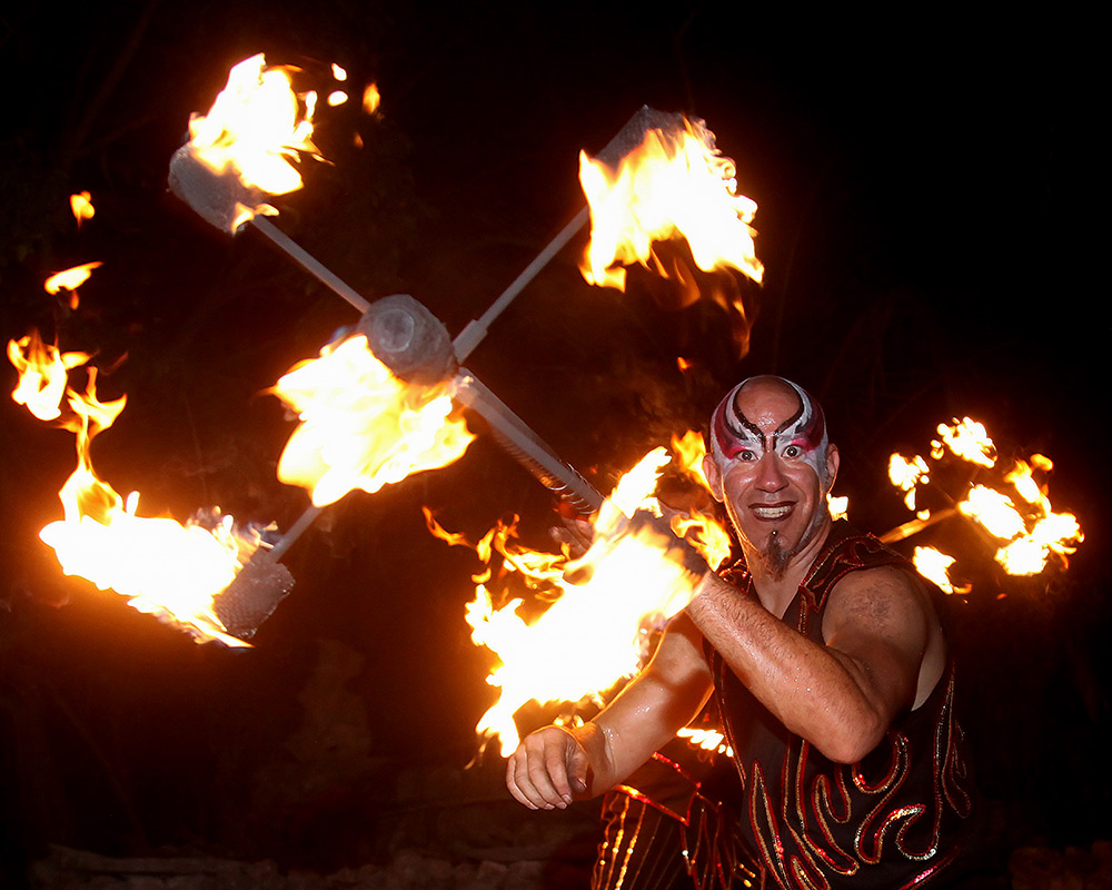 El show de fuego es una de nuestras especialidades más impresionantes. Profesionales malabaristas expertos en la manipulación del fuego, asombran a niños y adultos a través de hermosas coreografías e impactantes números unipersonales con diferentes instrumentos como antorchas, bastones, coronas, abanicos, estrellas, pois, hulas, lanzallamas, entre otros. Ideal para todo tipo de eventos en espacios exteriores.