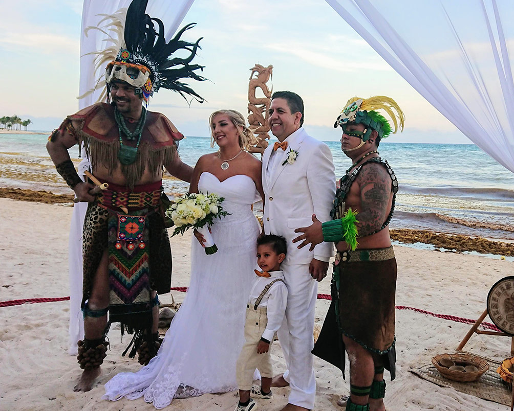 La mística ancestral del ritual maya que bendice la unión de las almas, se plasma en esta hermosa y significativa Ceremonia de enlace maya para bodas. Una emotiva y auténtica forma de celebrar su enlace en la cual sus invitados serán partícipes y no sólo testigos. Adaptable a todo tipo de espacios, ideal para una mágica boda en la playa. La ceremonia se imparte en español y/o inglés.